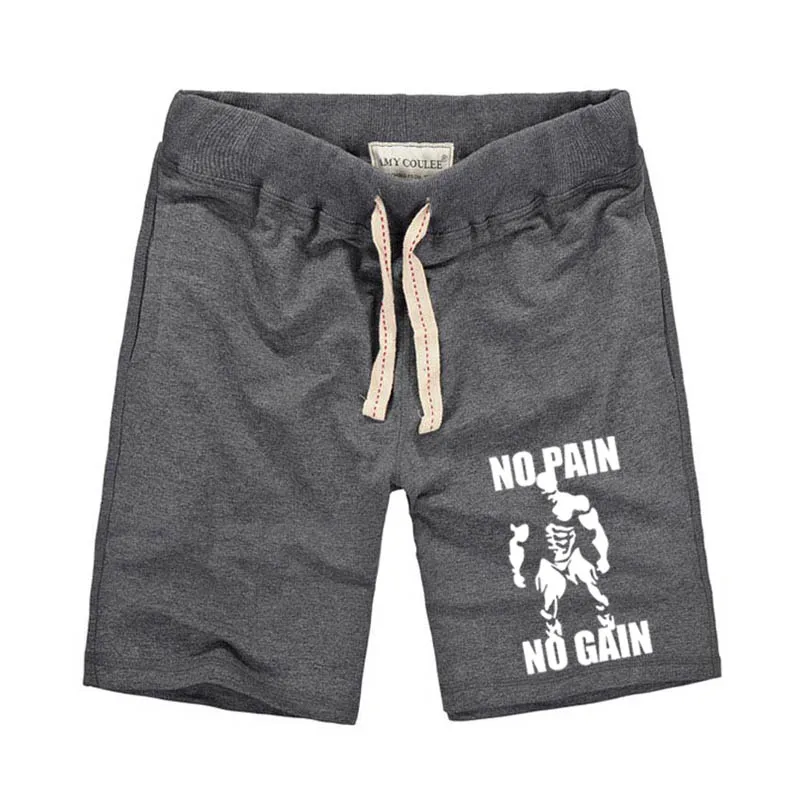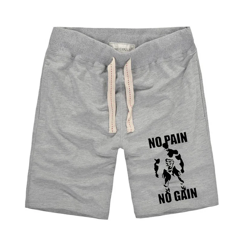 Men's Casual Pocket Shorts NO PAIN NO GAIN Character Pattern Printing Men's Straight Shorts Tether Waist Belt Plus Size S-3XL