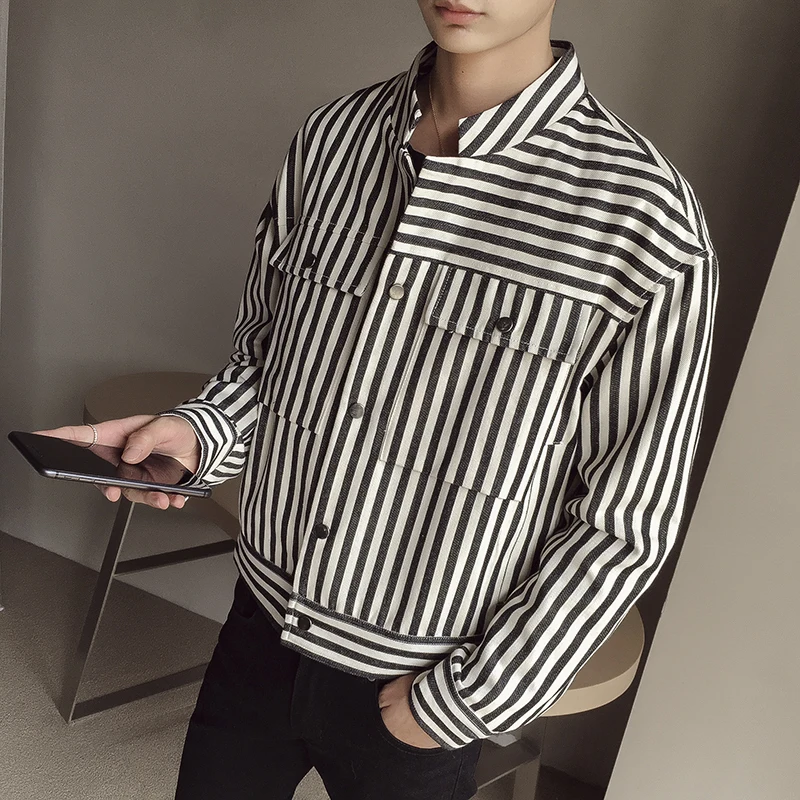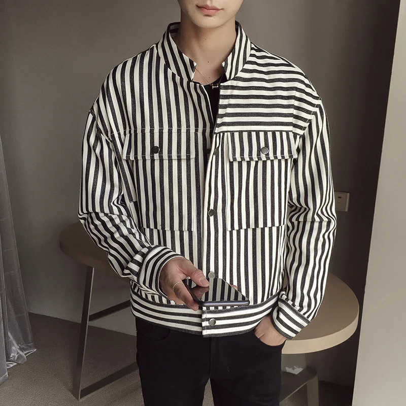 Autumn new 2019 men's jacket loose casual trend Korean version of the personality stripe youth students handsome windbreaker
