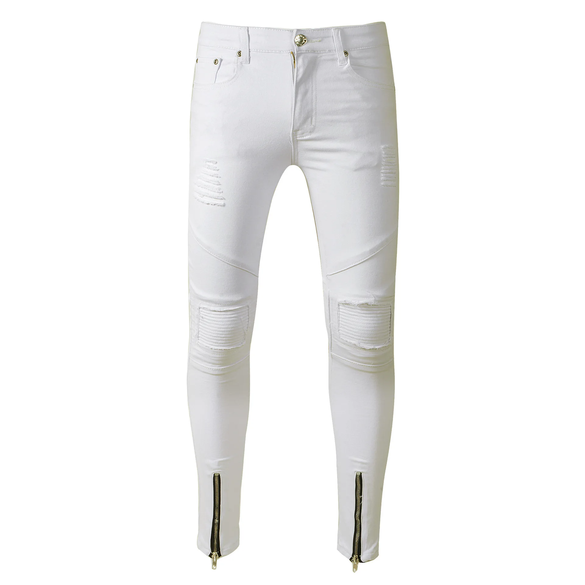 Men Jeans Stretch broken Hole Ripped Design Fashion Ankle Zipper white Skinny Jeans For Men