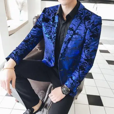 Royal Blue Floral Luxury Tuxedo Jacket Mens Blazers Designs Blazer Masculino Slim Fit Prom Dress Stage Jacket Blaser 2018 New