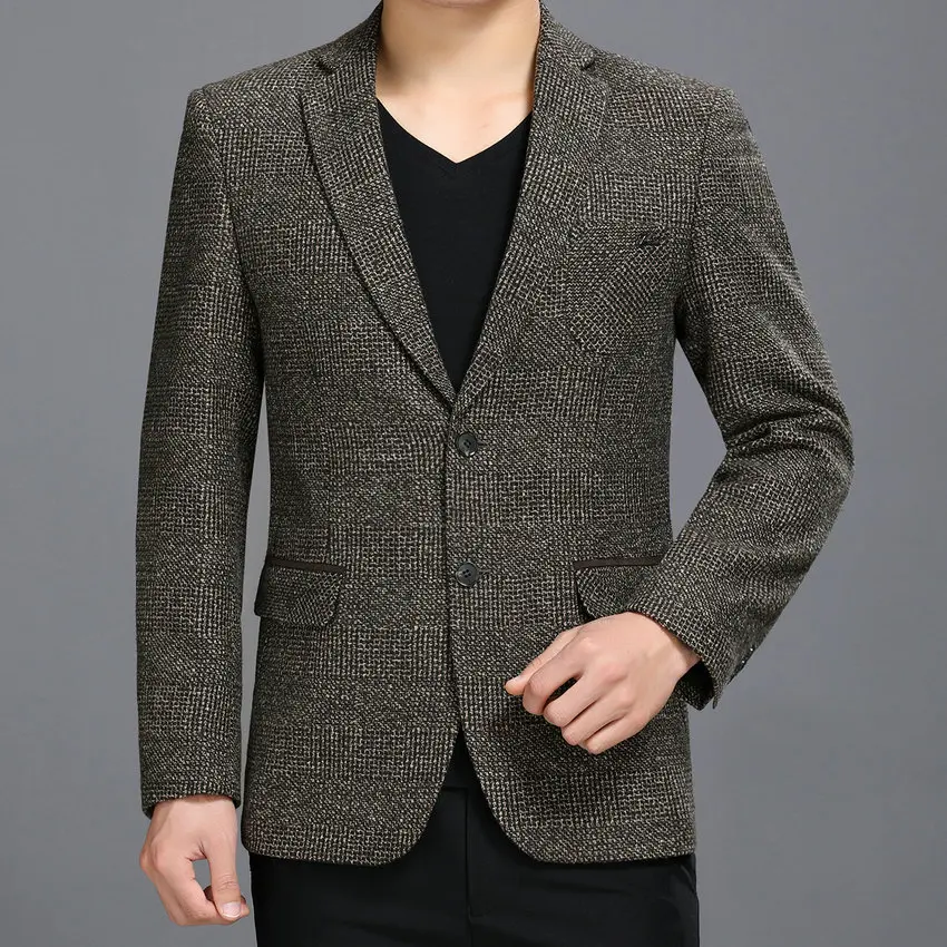 WAEOLSA Men Business Casual Blazers Spring Autumn Suit Jackets Man Slim Fit Blaser Masculino Coffee Gray Suit Coat Costume Male